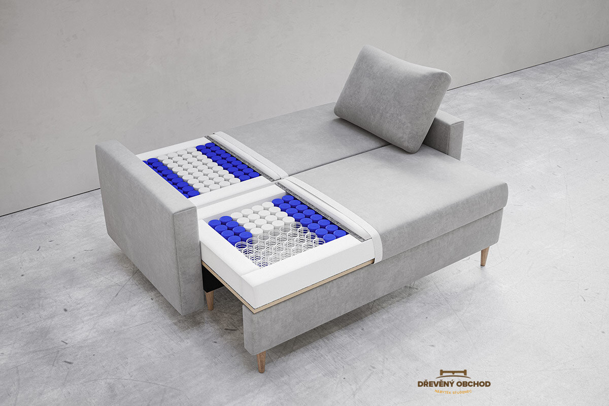 - Jádro: Součástí pohovky je bonelová pružina nebo taštička