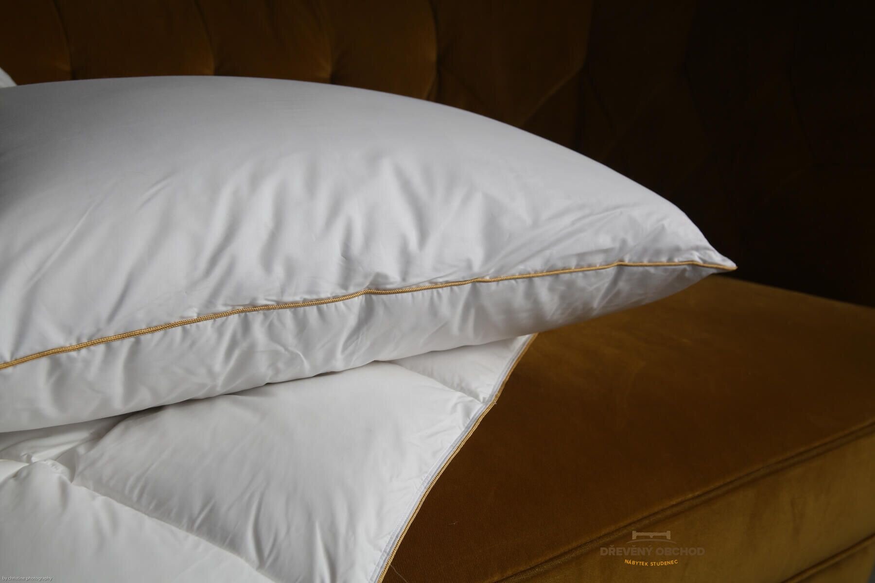 K přikrývce Vám můžeme nabídnout i polštář, který je dostupný ve dvou velikostech, je jemný, měkoučký, ale zároveň skvěle drží tvar. Tajemství úspěchu se skrývá v kombinaci vnitřní komory, vyplněné 100% husím peřím pro stabilitu – omezení slehávání polštáře, se dvěma vnějšími komorami, naplněnými výhradně 100% husím prachovým peřím. Rozměr polštáře: 50 x 70 cm (cena 4 650,-) nebo 70 x 90 cm (cena 6 520,-). Polštář 70 x 90 cm: 110 + 1000 + 110 g (jednotlivé komory), polštář 50 x 70 cm: 60 + 500 + 60 g (jednotlivé komory). V případě zájmu, uveďte do poznámky u objednávky.