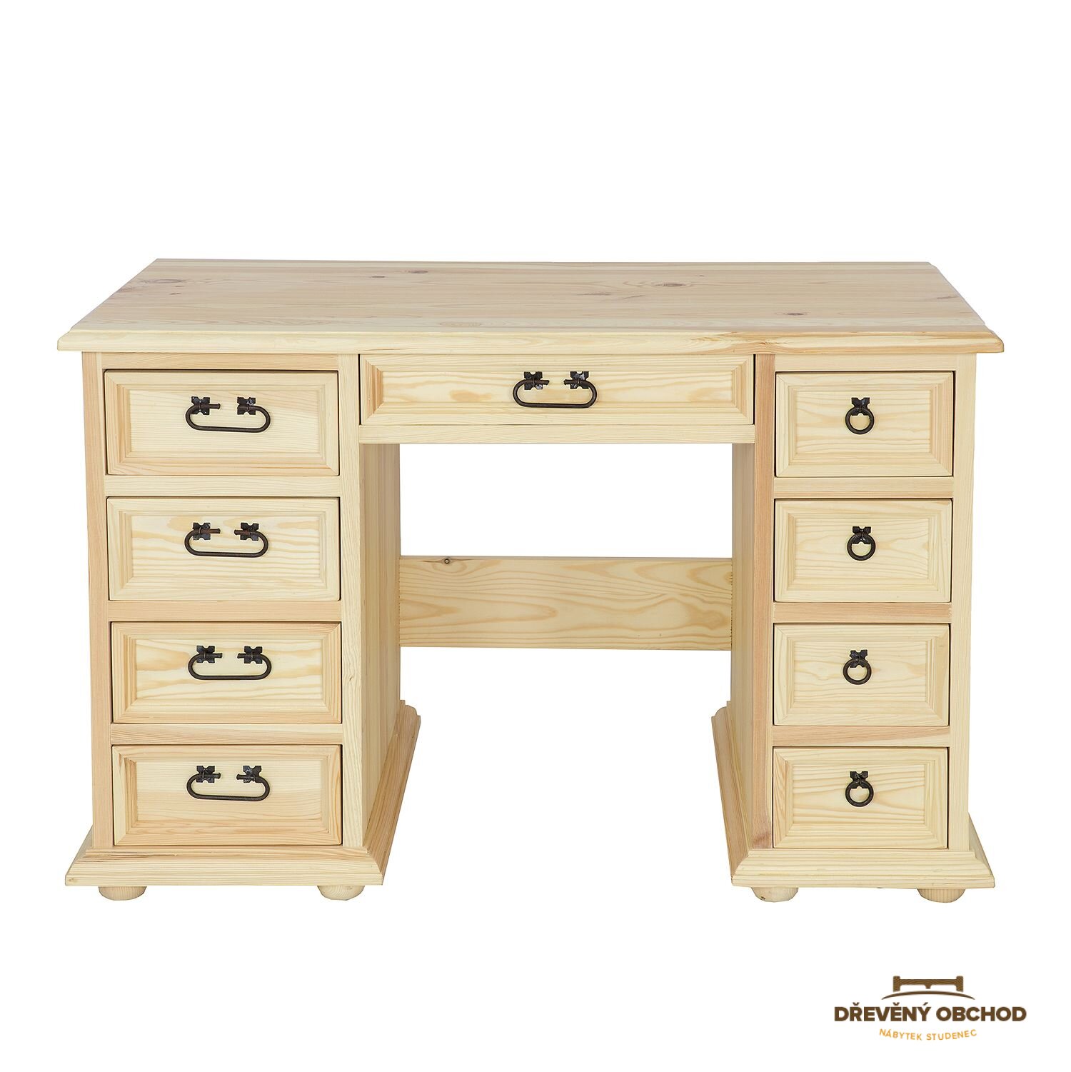Voskovaný psací stůl BR703 je kus nábytku dokonale přizpůsobený domácí kanceláři. Navrženo v rustikálním stylu, vyrobeno výhradně z masivního borovicového dřeva. Na levé straně je sloupek čtyř zásuvek. Na pravé straně jsou také čtyři malé šuplíky a uprostřed šuplík nebo police na klávesnici. Stůl má odolnou a pevnou konstrukci. Je vybaven prostornou pracovní deskou. K výrobě byly použity ručně vyrobené kovové panty a madla s letitým efektem. Psací stůl BR703 vytvoří ve vaší kanceláři hřejivou, jedinečnou atmosféru, která bude mít pozitivní dopad nejen na vaši pohodu, ale také na kvalitu vaší práce.