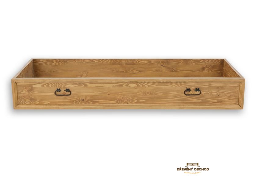 Voskovaný šuplík LK710 v rustikálním stylu je dokonalým způsobem, jak využít volný prostor pod postelí. Vyroben výhradně z masivního borovicového dřeva. K výrobě byly použity ručně vyrobené kovové kliky s letitým efektem. Šuplík je perfektní jako další místo pro uložení přikrývek nebo lůžkovin. Dodá každému interiéru jedinečnou atmosféru, plnou tepla a rodinné atmosféry. Díky jeho funkčnosti bude skladování mnohem jednodušší. Byl navržen tak, aby působil jako nedílný prvek celé konstrukce. Má jednoduchý způsob vysouvání - na zemi, na kolečkách.