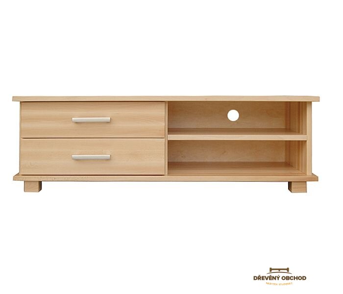 Moderní dřevěná skříň pro vybavení nejen TV vyrobená výhradně z tvrdého bukového dřeva. Zesílený korpus a systém otevírání s rukojetí dodávají nábytku designový charakter. Exkluzivní kus nábytku, který dokonale odhaluje vlastnosti dřeva. Přirozené, krásné a pohodlné. Šuplíky jsou plně výsuvné na pojezdech. Možnost instalace vodítek s tichým zavíráním. Má funkční otvory pro kabely. Použitý materiál je 100% přírodní dřevo z masivu buk. V základní ceně má TV stolek barvu bukového dřeva.