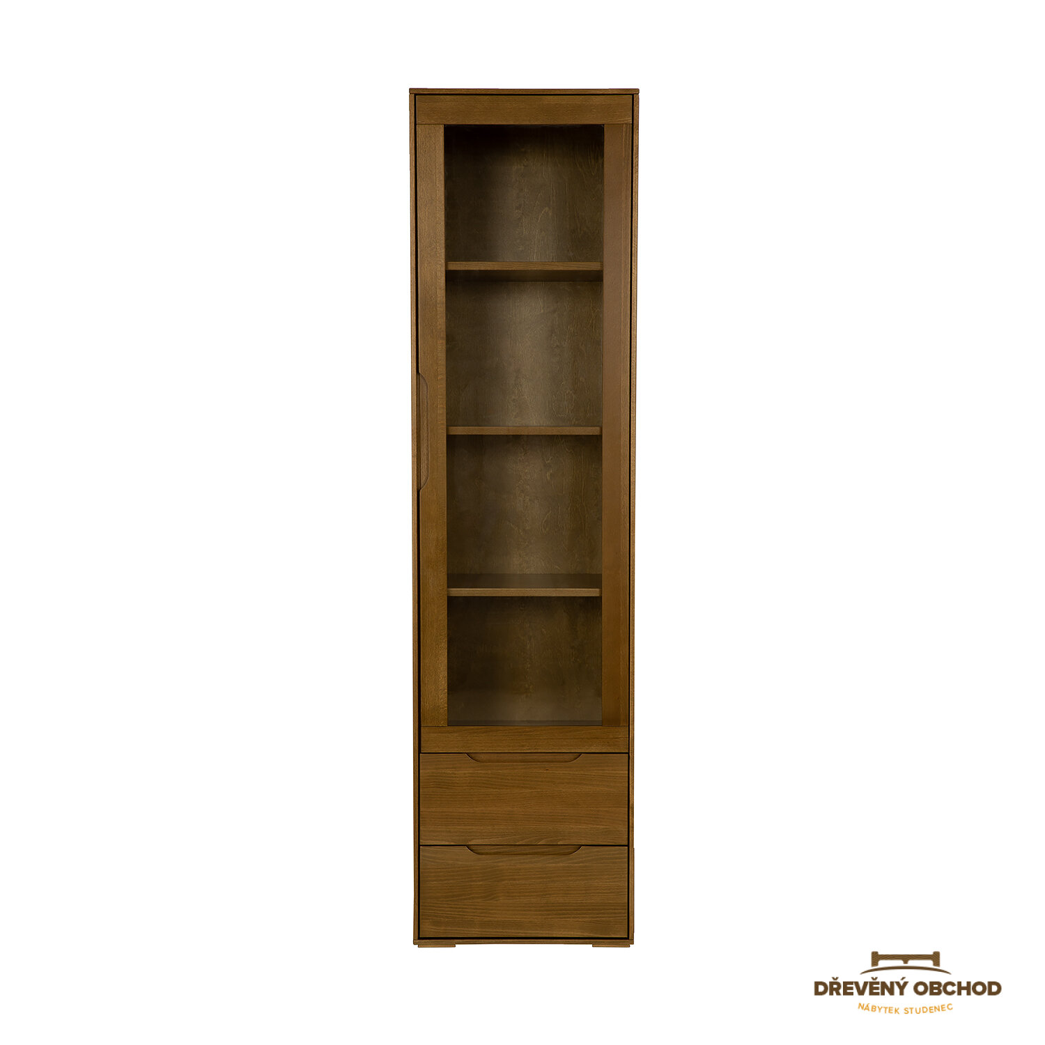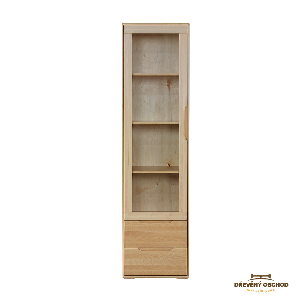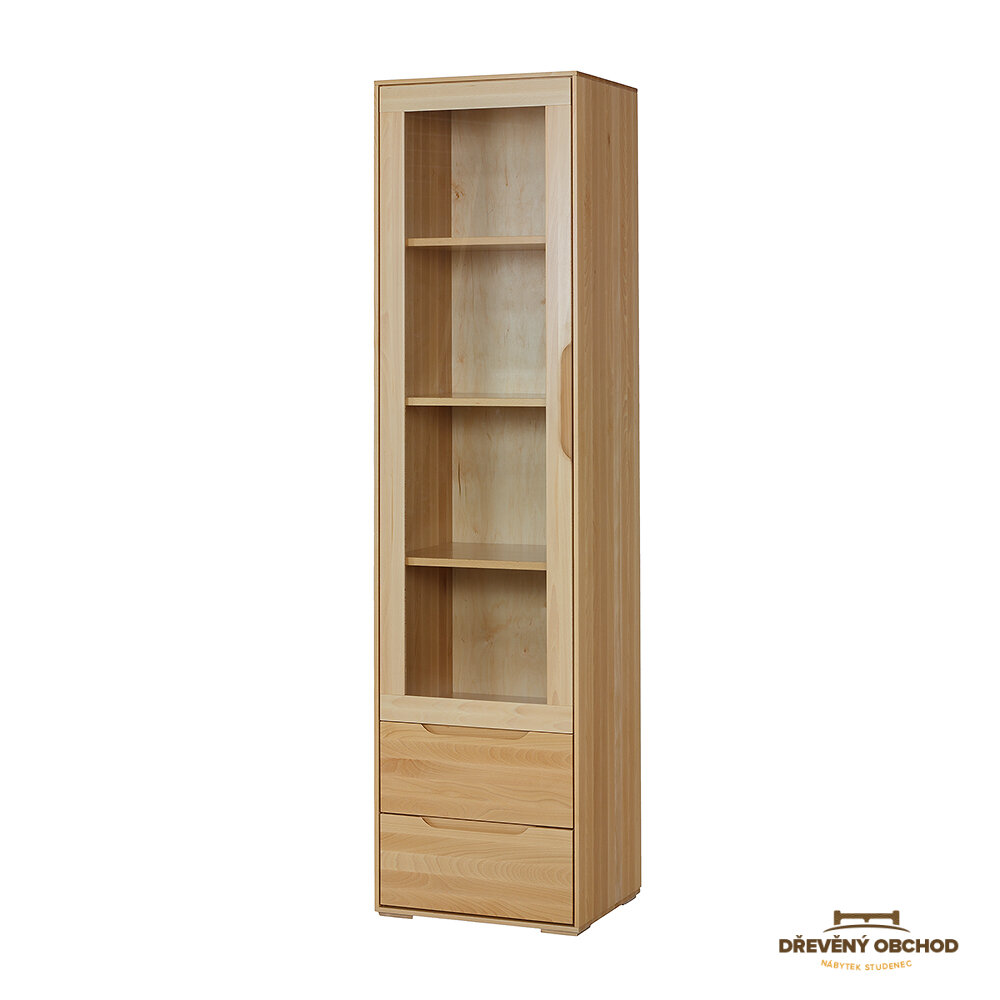 Vitrína s jednoduchými tvary a minimalistickým designem z přírodního bukového dřeva.